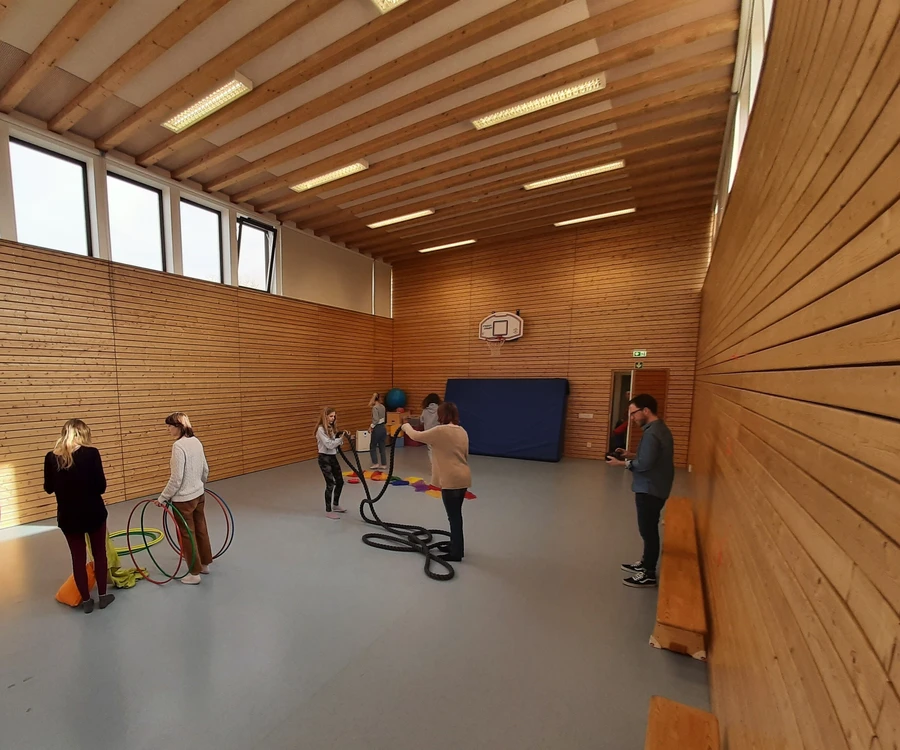 In dieser Improvisationstheaterübung stellen die Patientinnen die verschiedenen Facetten ihrer Körperbildthematik dar. Gemeinsam beschreiben die Mitpatientinnen und die Therapeutin die 4 Ebenen des Körperbildes.
