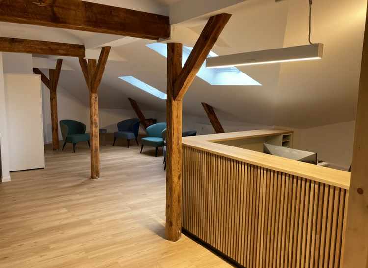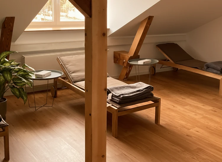 Zentral gelegen und gut erreichbar in Frankfurt-Sachsenhausen empfängt Sie unsere Tagesklinik in hellen, modern gestalteten Räumen. Klare Formen, warme Farben und liebevolle Details schaffen ein Umfeld, das Ruhe, Sicherheit und Vertrauen vermittelt.